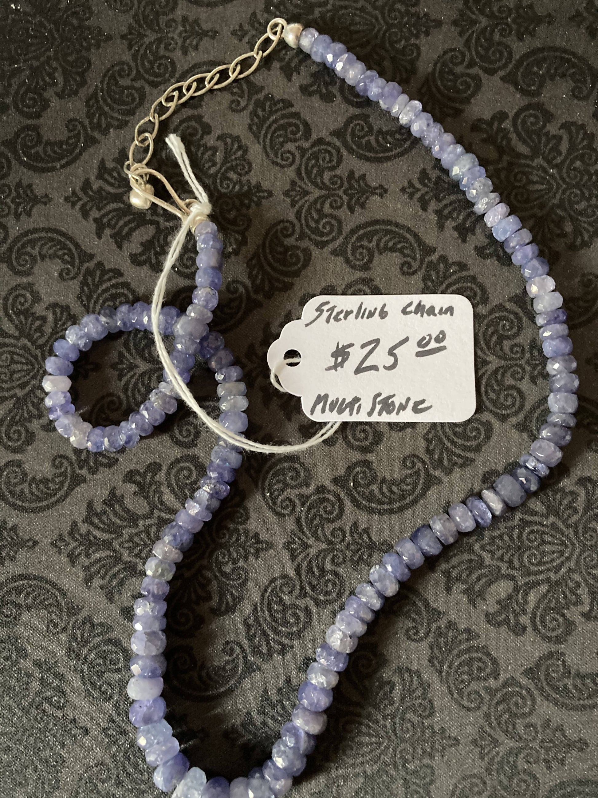 Jewelry = Vintage Multi-Stone Costume Necklace with Sterling Chain